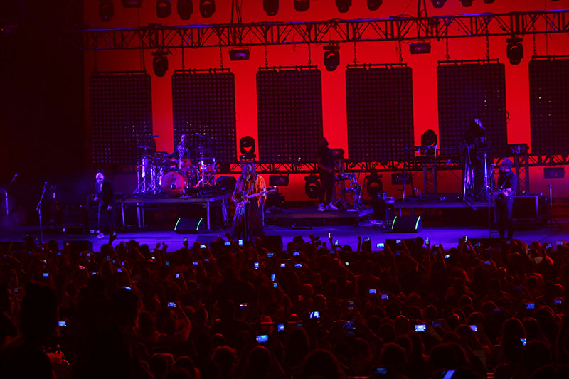 La banda originaria de la Ciudad de México, interpretó por poco más de dos horas temas como “Desperté”, “Que no”, “Disolviéndolos”, “El mundo en que nací” (todos éstos parte del “Jei Beibi” y también algunos de los clásicos que no podían faltar como: «Las Flores», «Chica banda» «Chilanga banda» , “Eres” y “El baile y el salón”.